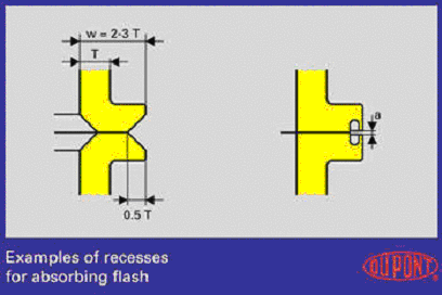圖3 此圖給出通過凹槽以吸收多余材料,從而避免飛邊(圖4)。薄壁零件設(shè)計時需要在零件雙方之間加入一個導(dǎo)槽,這樣,當(dāng)使用一定的焊接壓力時,零件壁不會移動而偏離預(yù)定位置。