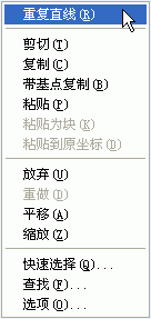 有時您需要重復(fù)執(zhí)行某個AutoCAD命令來完成設(shè)計任務(wù)。直接按回車鍵、空格鍵、或在繪圖區(qū)域單擊鼠標右鍵,并選擇快捷菜單中的“重復(fù)××”命令,AutoCAD就會重復(fù)執(zhí)行您所使用的最后一條命令,如圖1所示。